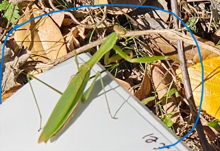 この時期に珍しく、蟷螂(カマキリ)が受付の処に現れました。